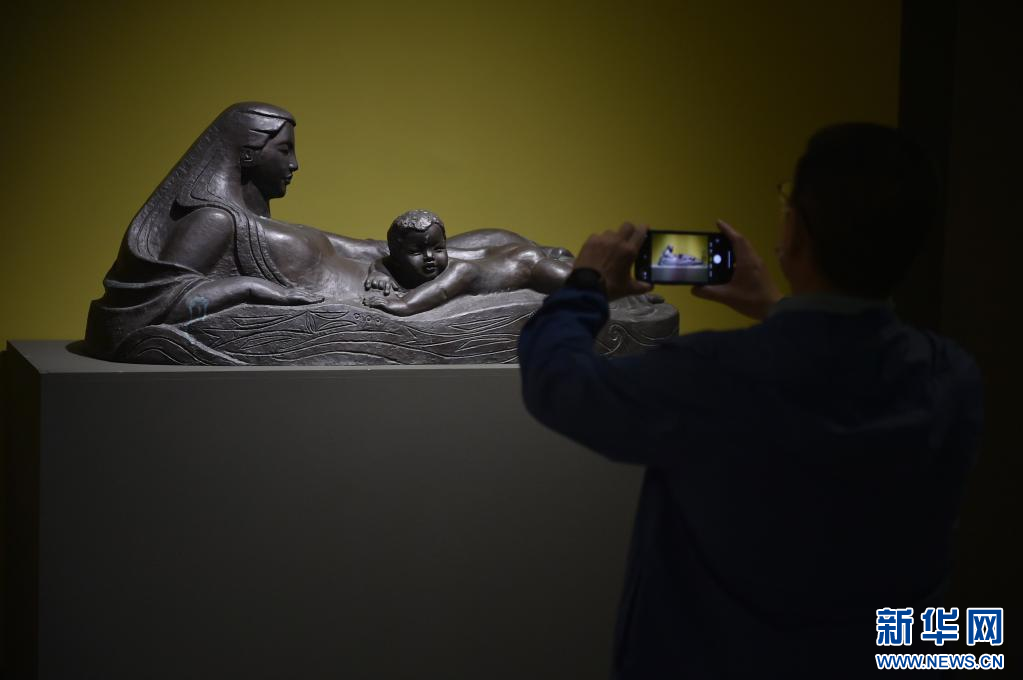 8月14日,參觀者在中國美術館拍攝展出作品《黃河母親》。 新華社記者 魯鵬 攝