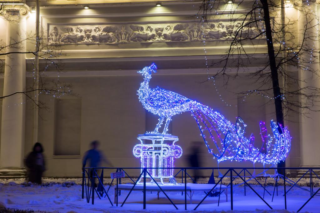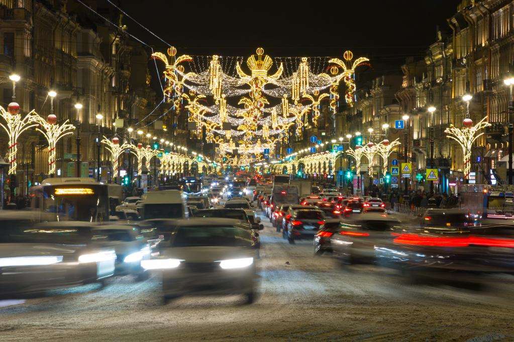 新年即將到來,俄羅斯圣彼得堡街頭點亮各色燈飾,營造節日氣氛。