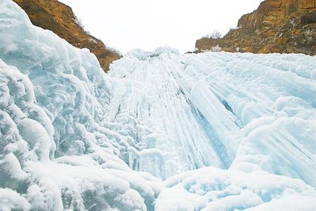 往日飛流直下的山泉瀑布,在冬日里幻化成一排排幾十米寬的銀瀑,從崖壁上垂瀉而下。山谷下,石壁間,清一色的玉白,宛如一座巨大的冰簾,順著崖壁的走勢,或凸出或凹進,層層疊疊將整個峽谷環抱起來。冰瀑、冰簾、冰柱、冰舌,有的相銜相連,有的各自為政,交替排列。如雕似塑,似瑪瑙,像琉璃,晶瑩透亮。冰下暗流涌動,嘩嘩的水聲,由高到低在冰下輕響。一時間,仿佛置身于潔白無瑕的童話世界。朋友不住地贊嘆:“這才是真正的冰清玉潔!”
