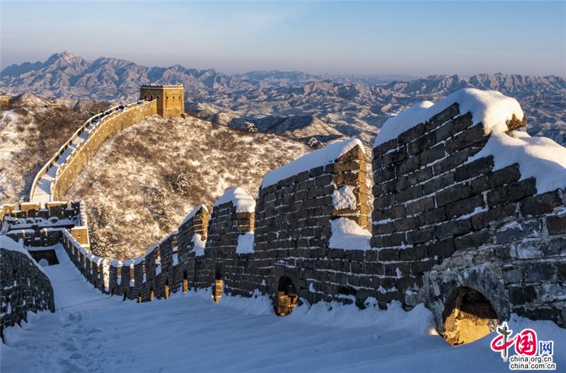春雪初霽古長城美輪美奐 銀裝素裹金山嶺氣勢磅礴