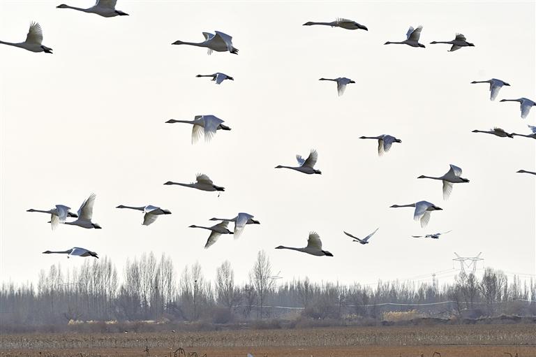中國甘肅網3月24日訊 據蘭州晚報報道(通訊員 鄭耀德 記者 雒煥素 攝)3月22日,在張掖黑河濕地國家級自然保護區臨澤縣鮑家湖濕地內,大群的野生大天鵝、赤麻鴨、綠頭鴨、灰雁等北遷候鳥嬉戲覓食,黑河濕地迎來了春季候鳥遷徙高峰期。