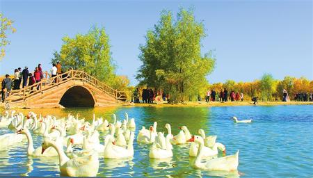 金塔胡楊林金波湖。崔買(mǎi)牛