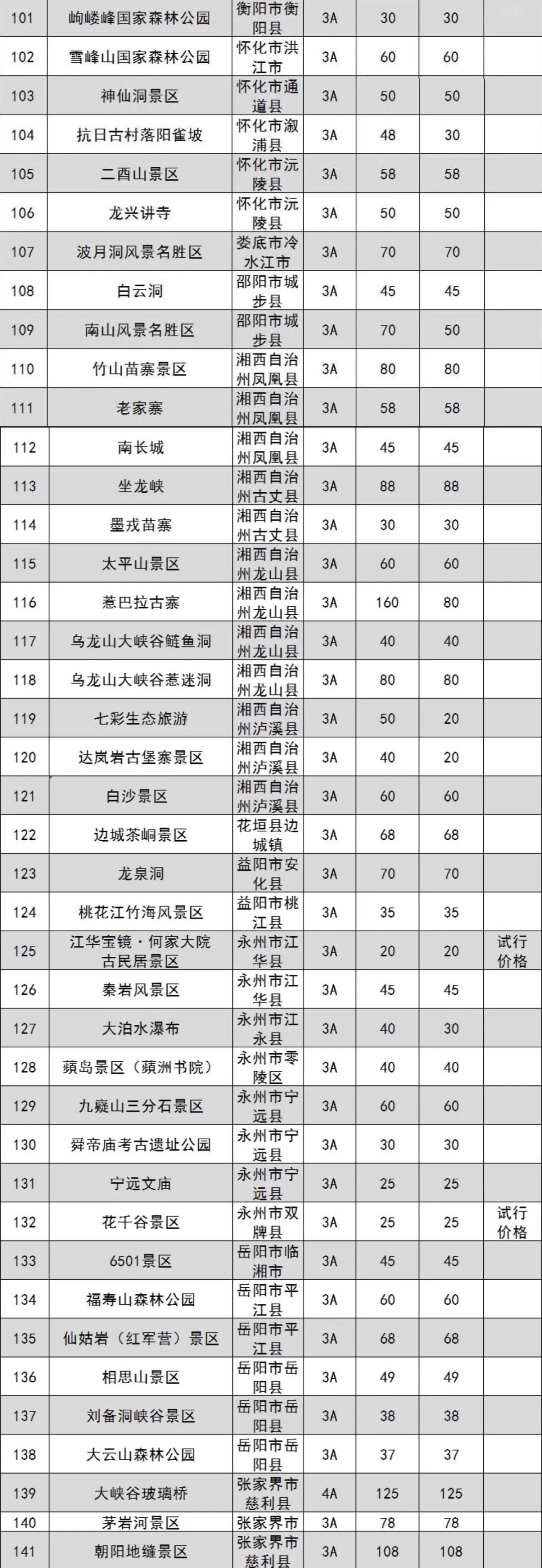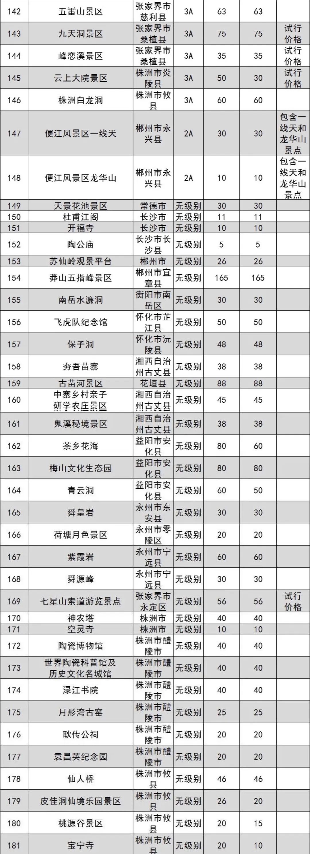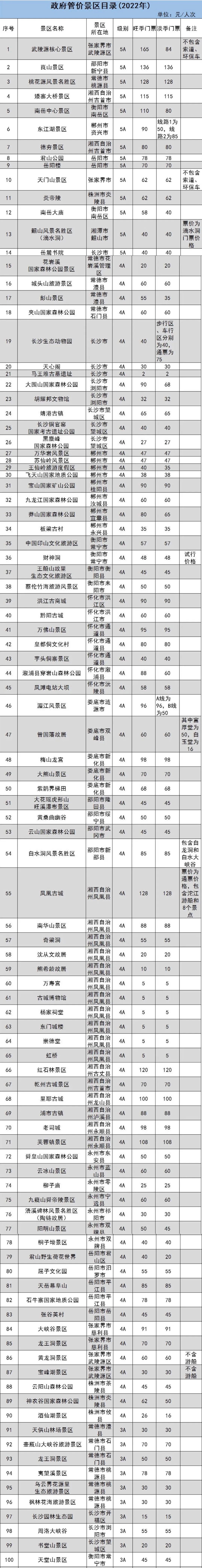 原標題:湖南省政府管價景區2022年門票出爐 共181個