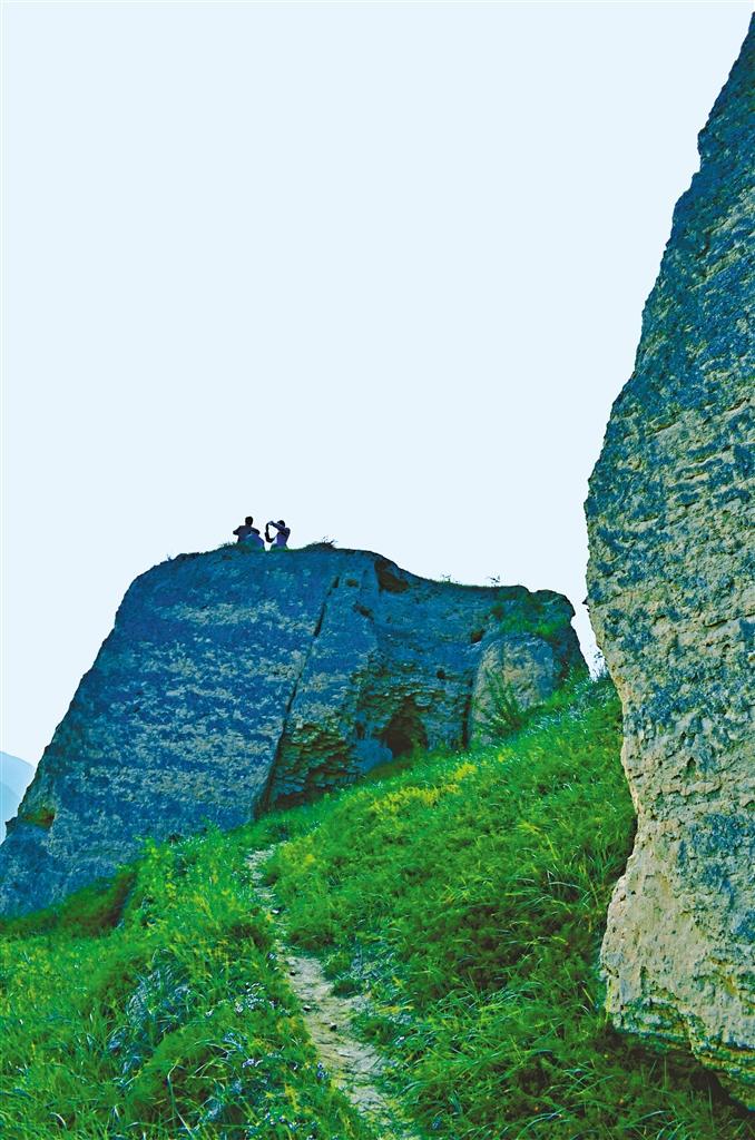 觀測點就選在了三岔鎮東坪上的古堡。由小路上山,道路崎嶇曲折,那座下臨無地、崔嵬的古堡越發顯得動人心魄。登上古堡殘存的仍然高達六七米的鼓樓,果然看到了古驛城的輪廓。在民居之間顯露著昔日的威勢。