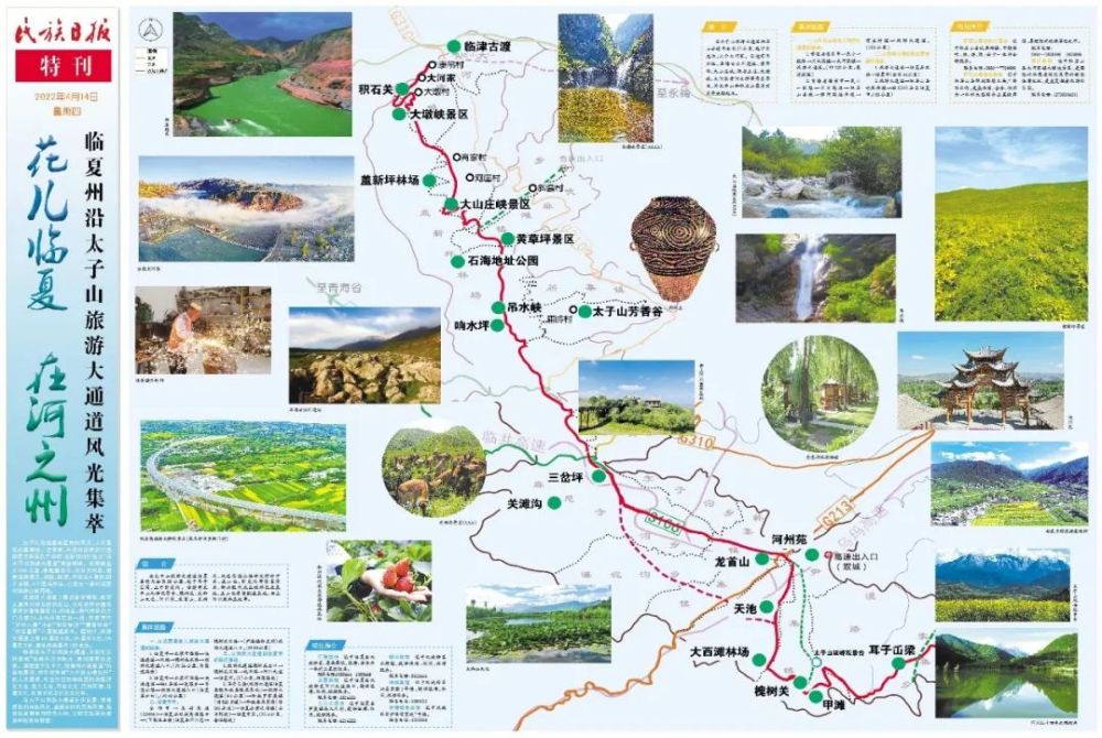 太子山沿線是臨夏自然風光、人文景觀的集萃地。近年來,州委州政府在打造臨夏文旅百億產業時,創新性地打造出“沿太子山旅游大通道”黃金線路。該線路全長286公里,南起蓮花山、北至大河家,涵蓋沿線康樂、和政、臨夏、積石山4縣的28 個鄉鎮、4個國有林場,已成為一條環臨夏州旅游公路網線。