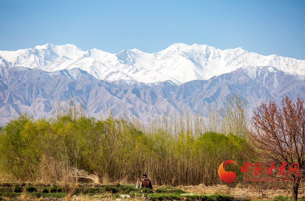 谷雨時節,甘肅省酒泉市肅州區西洞鎮農民搶抓農時,忙碌在田間地頭,遠處的祁連山與近處的田園風光,構成了一副美麗的春日農耕畫卷。