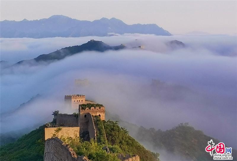在嚴格落實各項常態化疫情防控措施的基礎上,金山嶺長城景區2022年6月1日恢復對外開放。入夏的金山嶺長城,是詩意云海季,更是避暑天堂。(紀正權 張愛東)