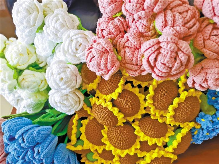 絨線編織花束以其別出心裁的創意火了,也將美好的情感定格成永恒的記憶。這只是隴原巧手們今年的創新項目之一。