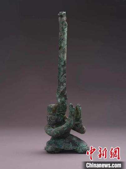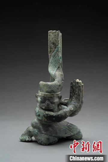 第一件扭頭跪坐人像出土時臉部布滿了銅銹,加之盤發沖天的造型,考古工作者并未意識到這是一件青銅人像。但這一疑慮很快隨著第二件扭頭跪坐人像的出土而被打破。