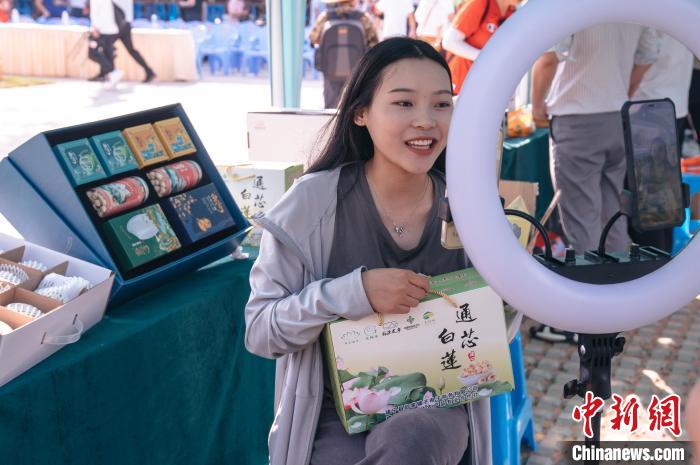 主播現場直播帶貨,銷售建蓮。 李南軒 攝
