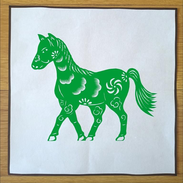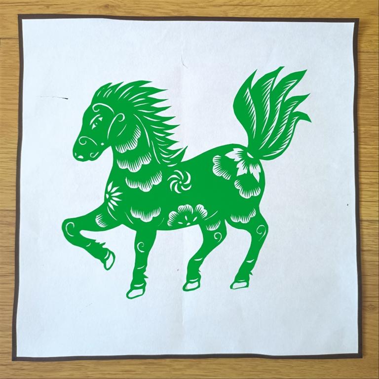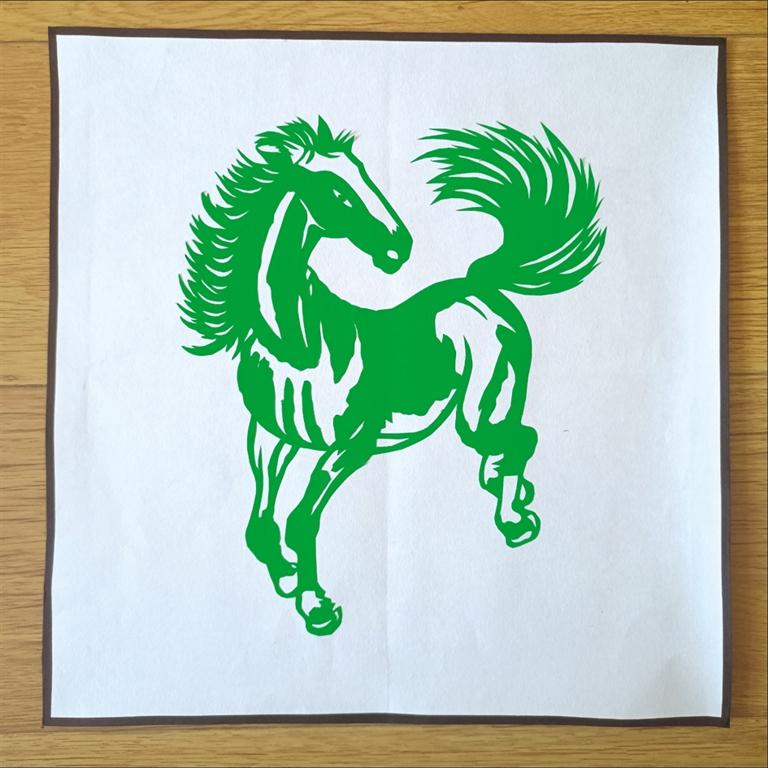 馬作為十二生肖屬相,一直是很重要的剪紙素材,包含著許多美好寓意。吳玲花創作這三匹“綠馬”,也是希望能用剪紙藝術傳遞祝福,只要大家都能守住“綠碼”,那么此次疫情一定能很快過去。吳玲花巧用諧音,將平安健康的美好祝愿寄托于這三匹“綠馬”之中。