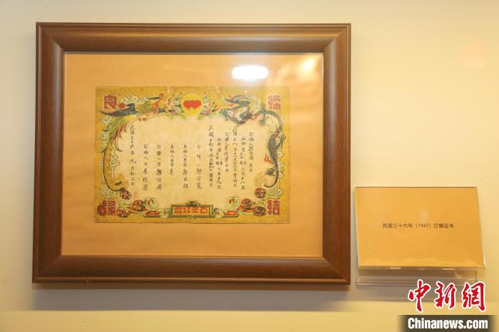 圖為博物館展出的民國時期的訂婚證書。 劉力鑫 攝