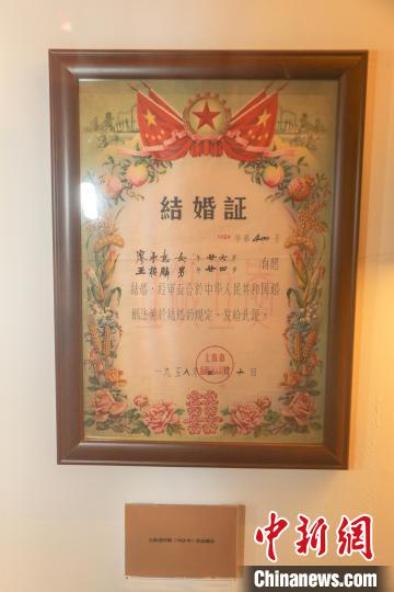 圖為博物館展出的建國初期的結婚證。 劉力鑫 攝