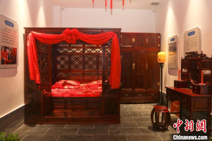 圖為博物館內布置的中式傳統風格新婚洞房。 劉力鑫 攝