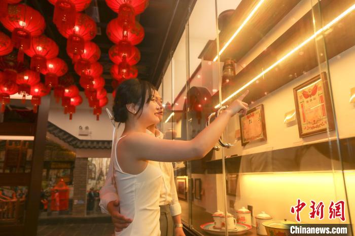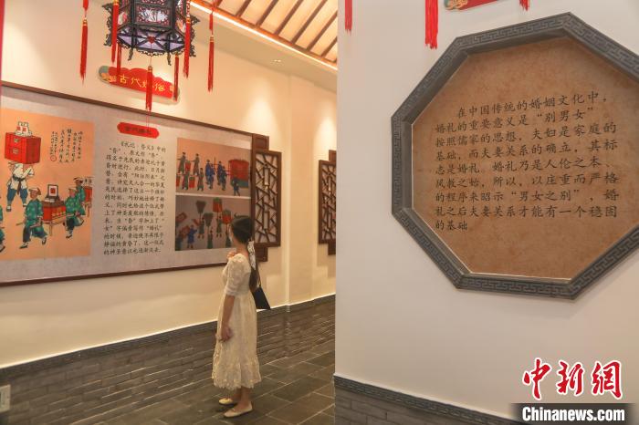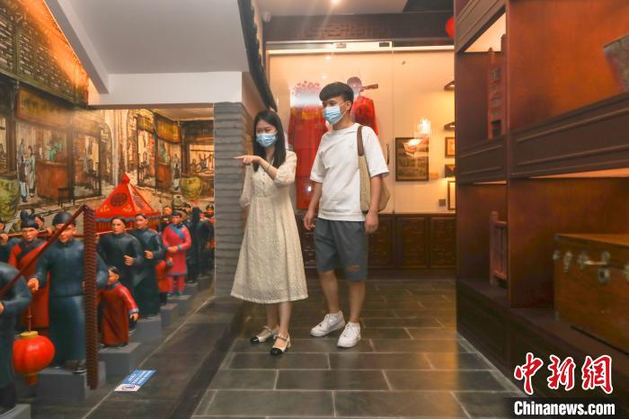 8月4日,正值“七夕”佳節,探訪位于江西南昌青山湖區婚姻登記處的贛鄱婚俗博物館,一些新人和市民正在參觀展覽。這是江西首個全部以婚俗為主題的博物館,選取了江西各地最具特色的婚俗禮儀進行展示,通過不同時期的婚禮習俗以及婚書、陪嫁的箱子、食盒、電視等老物件,展現贛鄱百姓的民俗生活,喚起人們對傳統婚俗禮儀的記憶。