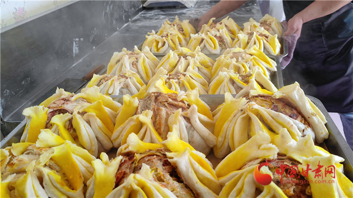 記者走進榆中縣金崖鎮浩燕饅頭店,一股濃濃的胡麻油、玫瑰醬、香豆等混合的香氣撲面而來,李浩燕正在忙碌地趕制一批榆中傳統手工月餅。案板上除了發好的面團,還擺上了炒胡麻碎、姜黃、白砂糖等豐富的佐料。只見李浩燕從揉面開始,然后鋪餡、搟制、卷面、切分、披花,一道道工序一氣呵成。經過一個多小時,新鮮美味的月餅出爐了,切開后,內里豐富,色彩斑斕,咬上一口軟糯可口,回味留香。