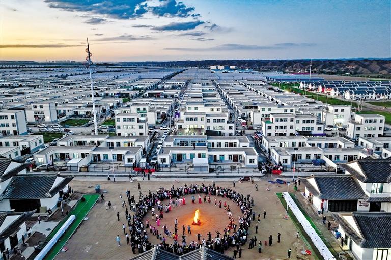 隨后,一場盛大的篝火晚會開始了,搬遷群眾身著節日的盛裝,跳起了歡樂的鍋莊舞,載歌載舞表達著內心的喜悅,謳歌新時代。《再唱山歌給黨聽》《幸福中國一起走》等一首首表達搬遷群眾心聲的歌曲將活動推向高潮。