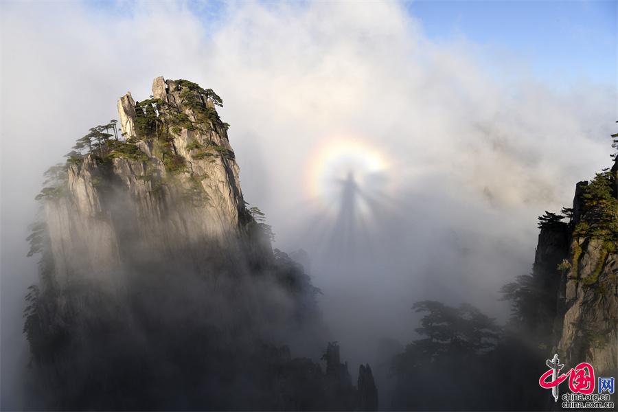 原標(biāo)題:黃山景區(qū)“佛光”顯現(xiàn) 自然美景象征吉祥(圖)