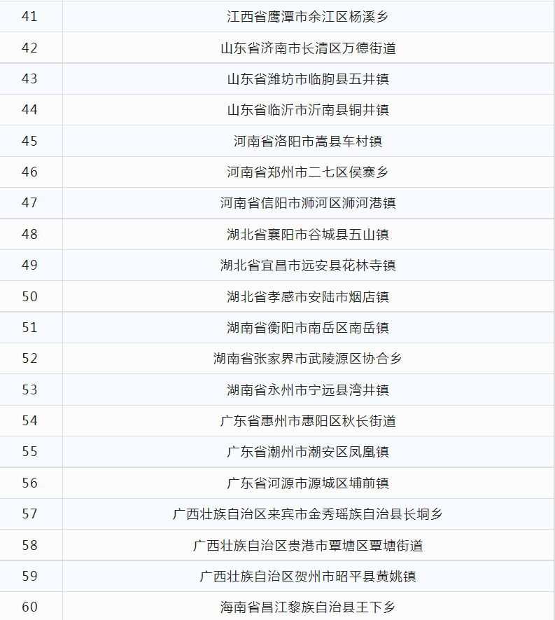 第二批全國鄉村旅游重點鎮(鄉)名單