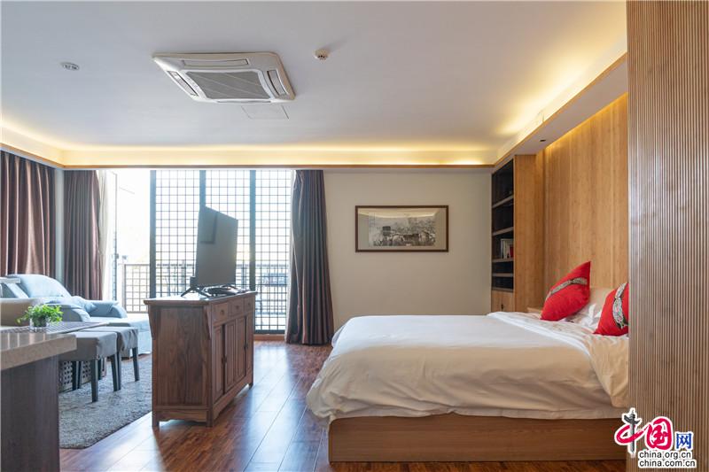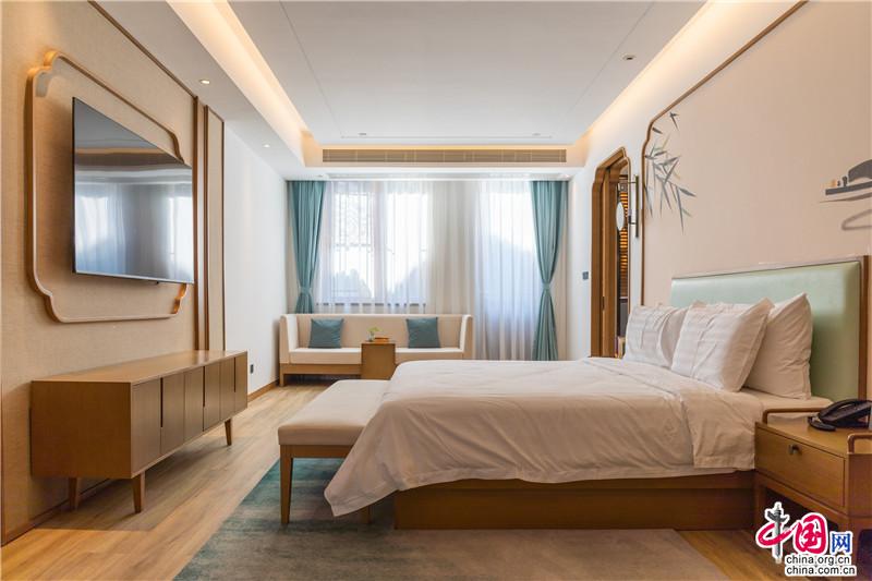 房間是以古代美學為基礎提煉出清新淡雅的新中式極簡風格,在設計感與舒適感并存的空間里,得到更好的情緒沉浸。撲進柔軟的床榻,睡遍風月。