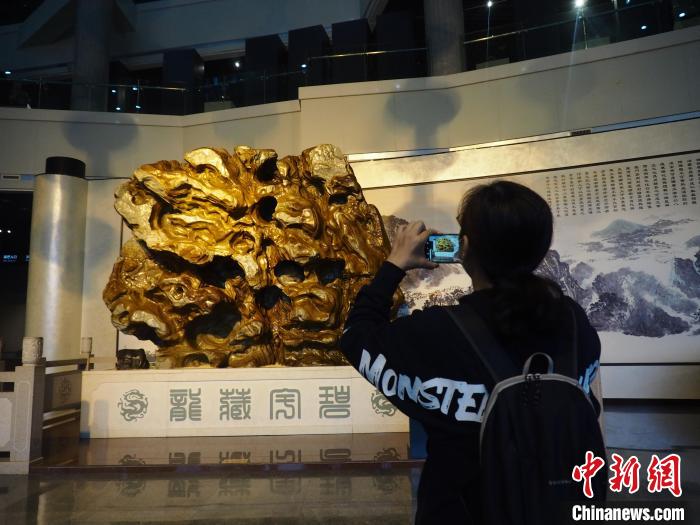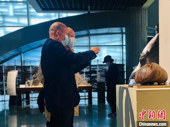 圖為一位參觀者用手機拍攝奇石。李嬌陽 攝