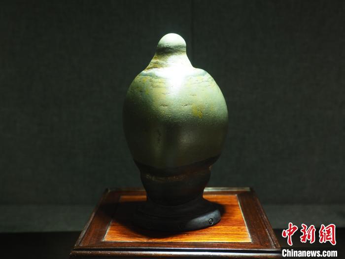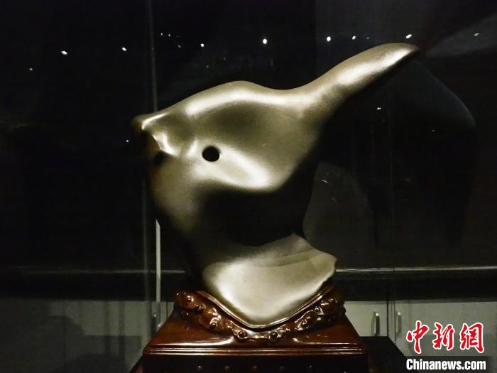 圖為現場的一塊奇石展品形如瓷瓶。李嬌陽 攝