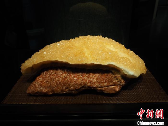 圖為現場的一塊奇石展品形貌如同泛著油光的豬肉。李嬌陽 攝