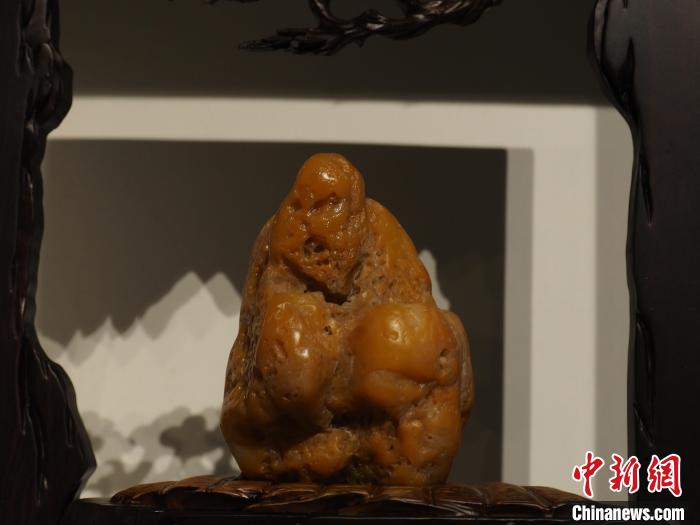 圖為現場展出的一塊奇石形似和尚。李嬌陽 攝