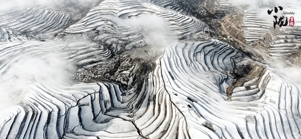 白雪覆蓋的山谷,靜謐的村莊,滿目潔白;遼闊的草原變成莽莽雪原,白雪皚皚的冰湖純凈如鏡;山頭繚繞的云霧和銀裝素裹的梯田互相映照,構成了一幅悠然清麗的水墨畫卷。