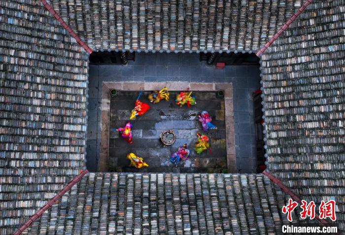安徽省宣城市郎溪縣省級非遺小馬燈在郎溪縣濤城鎮(zhèn)慶豐村大佛山養(yǎng)心谷展演。 李曉紅 攝
