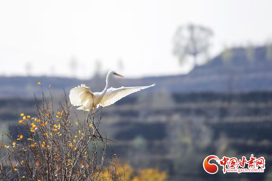 初冬時節,在平涼市崇信縣于家灣鷺鳥紛飛,繪就一幅人與自然和諧共生的美麗畫面。