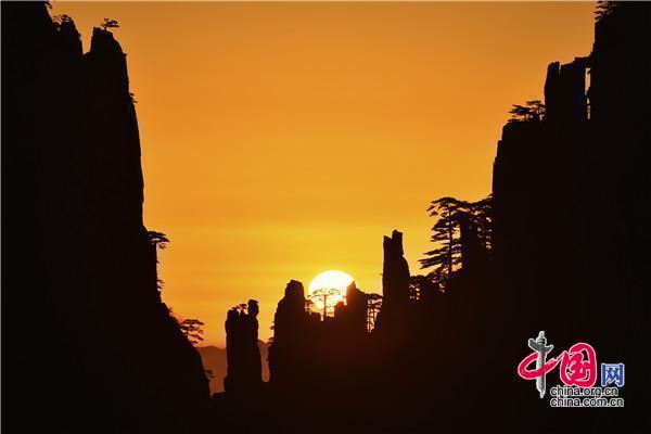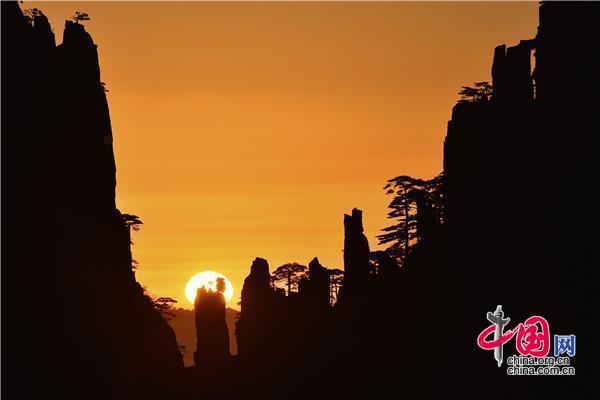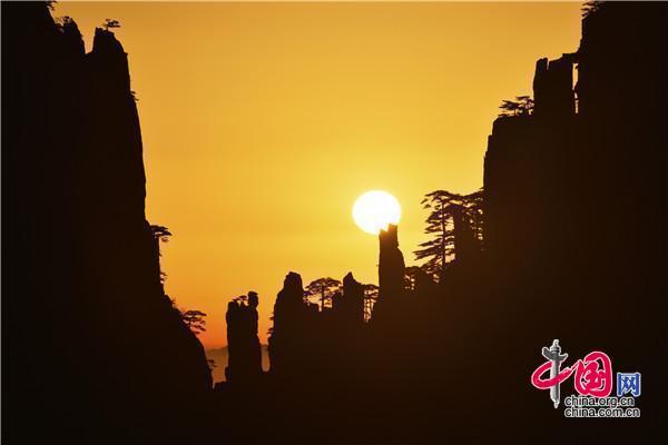 原標題:安徽黃山:日出巧石神奇變幻 畫面猶如仙境