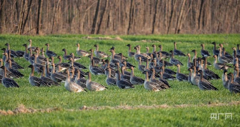 大雁在草叢中覓食(央廣網(wǎng)發(fā) 劉勇 攝)