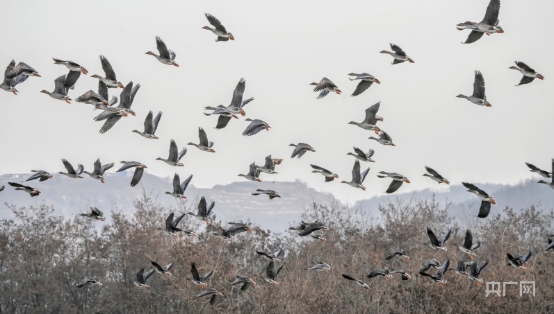 央廣網(wǎng)蘭州12月13日消息(記者李紅軍 通訊員劉勇)近日,甘肅省平?jīng)鍪袥艽h涇河流域迎來(lái)了數(shù)百只遷徙南飛的大雁落腳,它們成群結(jié)隊(duì)在草叢中嬉戲、覓食,與冬日的涇河構(gòu)成了一幅美麗和諧的生態(tài)畫卷。