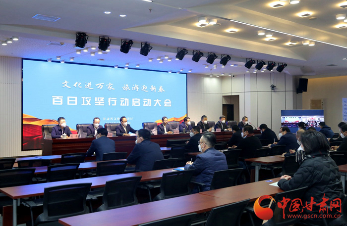中國甘肅網(wǎng)12月14日訊 (本網(wǎng)記者 張?zhí)m琴 文/圖)14日上午,甘肅省文旅廳召開“文化進(jìn)萬家 旅游迎新春”百日攻堅(jiān)行動(dòng)啟動(dòng)大會(huì),向全省文旅系統(tǒng)吹響了復(fù)工復(fù)產(chǎn)的“動(dòng)員令”,市場復(fù)蘇的“集結(jié)號”。省委宣傳部副部長、省文旅廳黨組書記何效祖在蘭州主會(huì)場出席并講話,通過視頻會(huì)議向各市州文旅部門安排部署工作。
