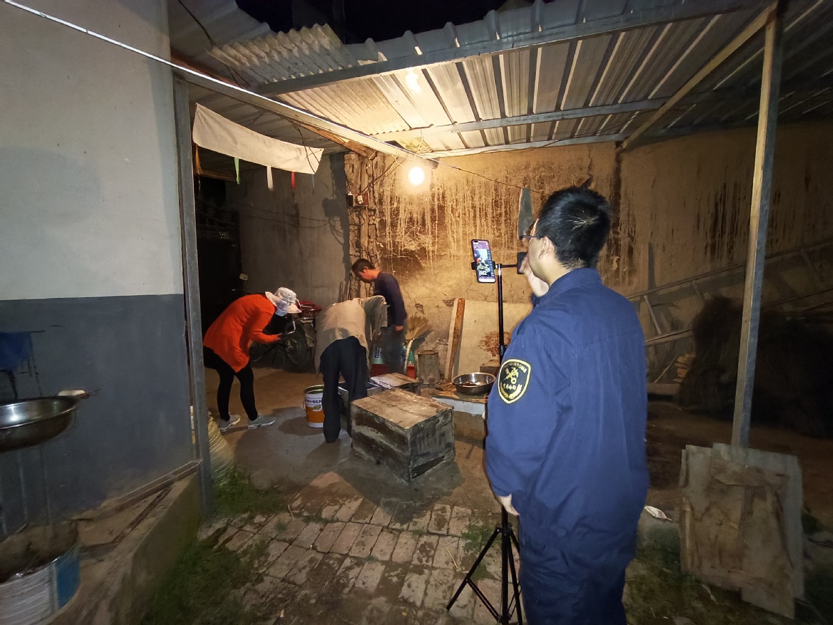 在她身后,蘭州海關幫扶工作隊員們各司其責,有的手扶打光燈隨時調整補光,有的緊盯攝像機鏡頭及時調整畫幅和角度,有的作為觀眾與文香蓮女士眼神交流……儼然一個專業拍攝團隊。