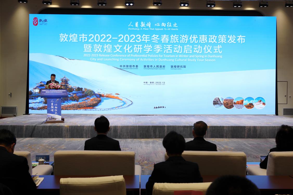 從12月15日敦煌市舉行的2022-2023年冬春旅游優惠政策發布暨敦煌文化研學季活動啟動儀式上了解到,甘肅酒泉敦煌市制定出臺多項冬春旅游優惠政策措施,吸引游客、拉動消費,促進文旅市場回暖復蘇。