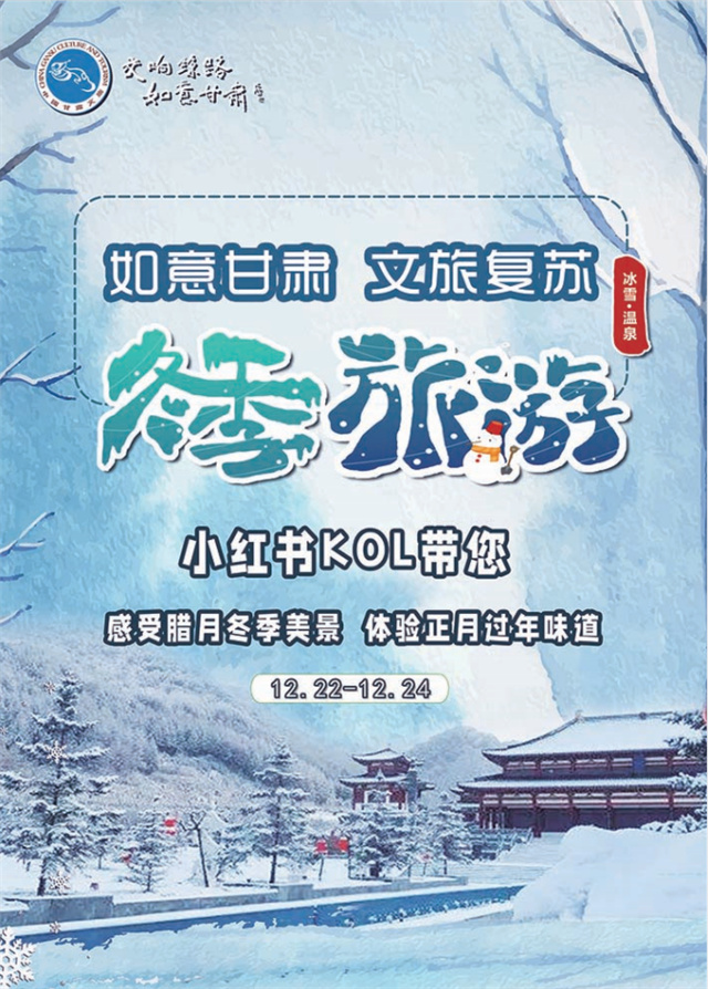 為加快復蘇甘肅省文旅行業,積極推進“文旅農”融合發展,促進甘肅冬春旅游產業的高質量發展,甘肅省文旅廳聯合小紅書計劃于2022年12月—2023年1月底,組織全國5位 KOL 走進甘肅,打卡定西通渭悅心國際書畫村、渭河源景區、隴西李家龍宮、隴西臘肉、天水麥積山溫泉、滑雪場、農家樂、天水古城及當地特色年味美食,挖掘體驗拍攝蘭州周邊的民宿、特色美食及鄉村旅游,利用短視頻拍攝及直播,圖文筆記發布、才藝代言展示等方式,深度體驗甘肅鄉村旅游及歷史文化,讓甘肅鄉村農特產品和文旅活躍起來。通過視頻及圖文筆記推廣,發布視頻作品10條以上,圖文筆記5篇以上,實現100萬的曝光量。