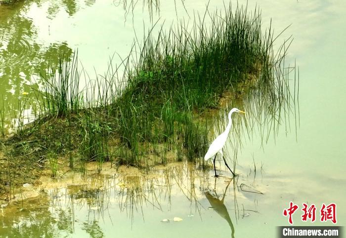 鳥兒在濕地休憩。棗莊宣傳部 供圖