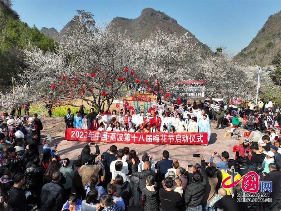 眼下,荔波縣萬畝梅原景區已經進入最佳觀賞期。1月30日,2023年中國·荔波第十八屆梅花節開幕,八方游客齊聚荔波縣黎明關水族鄉萬畝梅原景區,聽曲、賞梅、品茗、觀演出,共賞梅原盛景。