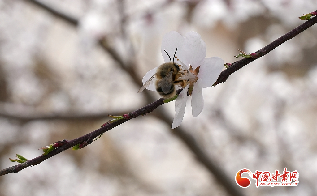 3月15日,在涇川縣的山峁、村莊、景區,一樹樹桃花競相綻放,深淺不一的粉色交相輝映,淡淡的香味撲鼻而來,到處散發著春天的氣息,令人心生愉悅。