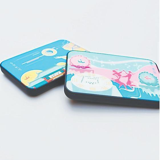 圖案來源于伏羲女媧因分別從山頂推下的兩磨盤緊緊結合的現象驗證了上蒼意圖,決定繁衍后代的傳說。火鳥騰飛之日與玉兔奔騰之月隔著天河星辰分懸兩邊,繪有河圖的磨盤見證生命的起源,雙人自由舞動的身軀揚起歡騰的節律,完美契合于陰陽諧振的樂音。美好寓意的組合充溢起整個載體,令人傾心又矚目于彩色流韻的真景里。