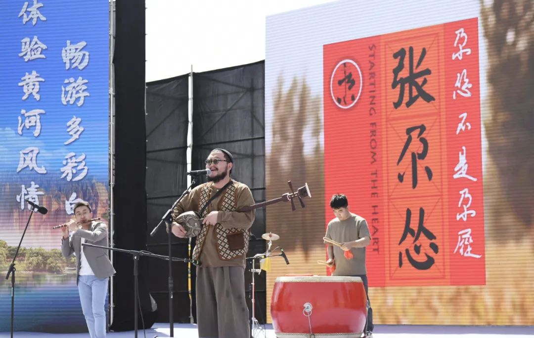 白銀市靖遠籍民謠音樂人張尕慫和他的團隊在旅游節上為觀眾演唱《沒有黃河我活不下》。多年來,他始終堅守初心,帶著作品向全國乃至全世界宣傳甘肅,宣傳家鄉白銀。喬麗霞 攝