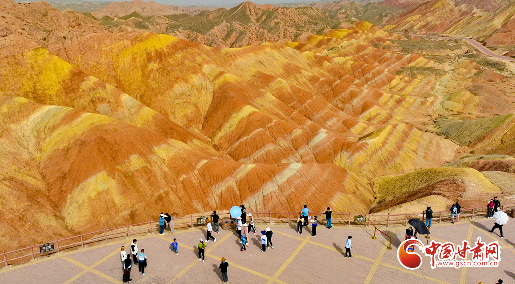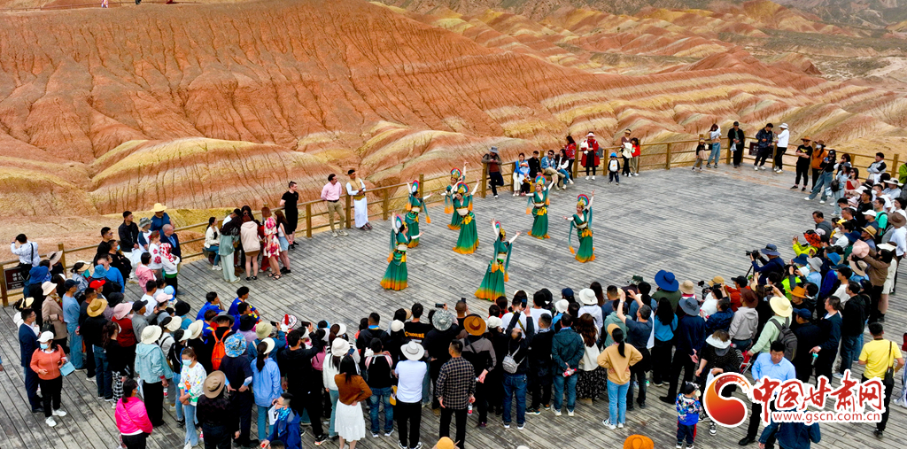 5月1日,甘肅張掖七彩丹霞旅游景區內游人如織,來自全國各地的18000多名游客慕名前來,欣賞獨特的丹霞地貌,領略大自然雄奇壯觀的景色。