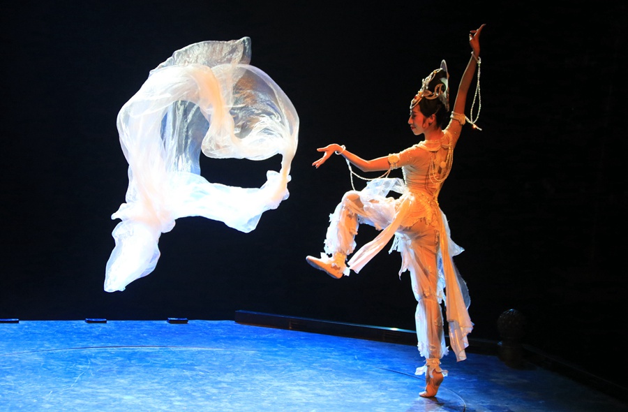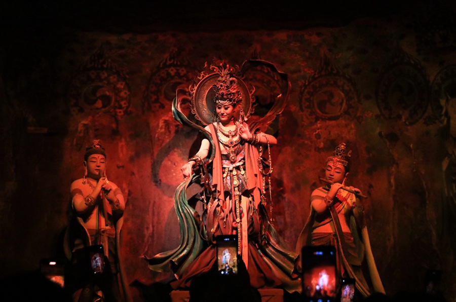 大型洞窟式沉浸體驗劇《樂動敦煌》演出現場。張曉亮攝