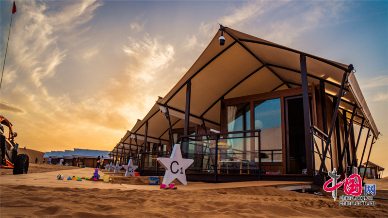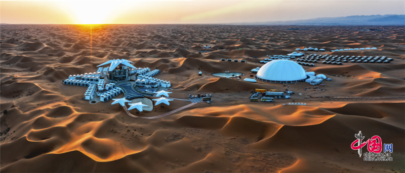 沙坡頭旅游區依托良好的生態資源,打造了國內首個以沙漠觀星為主題打造的酒店——星星酒店,在蒼茫遼闊的沙漠之中,這座造型獨特的酒店仿佛星星一般,閃爍其中。