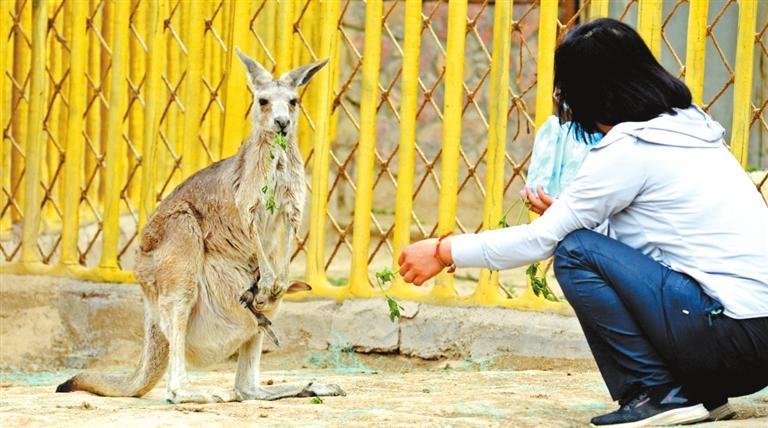 而7個月大的灰袋鼠還躲在媽媽的育兒袋里,飼養員說還有一個月,它就可以下地走路了。
