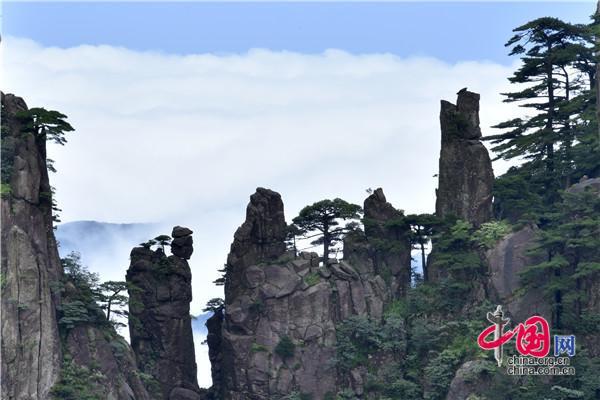 7月22日下午,安徽黃山風景區暴雨洗禮之后,漫山清秀俊逸,山石似黛,蒼松翠綠,云霧飄渺間,時而煙云繚繞如輕紗飛舞,時而又在千峰萬壑中波濤涌動,與奇松、怪石相映成趣,美如仙境。