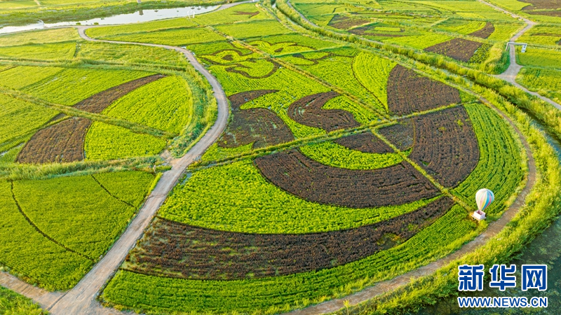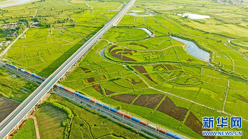 8月20日,在甘肅省張掖市甘州區(qū)烏江鎮(zhèn)新河田園綜合體藝術(shù)稻田景觀區(qū),以“絲路水鄉(xiāng)·稻畫田園”為主題組成的稻田畫惟妙惟肖、栩栩如生,呈現(xiàn)出祁連山下別樣的田園魅力。新華網(wǎng)發(fā)(成林 攝)