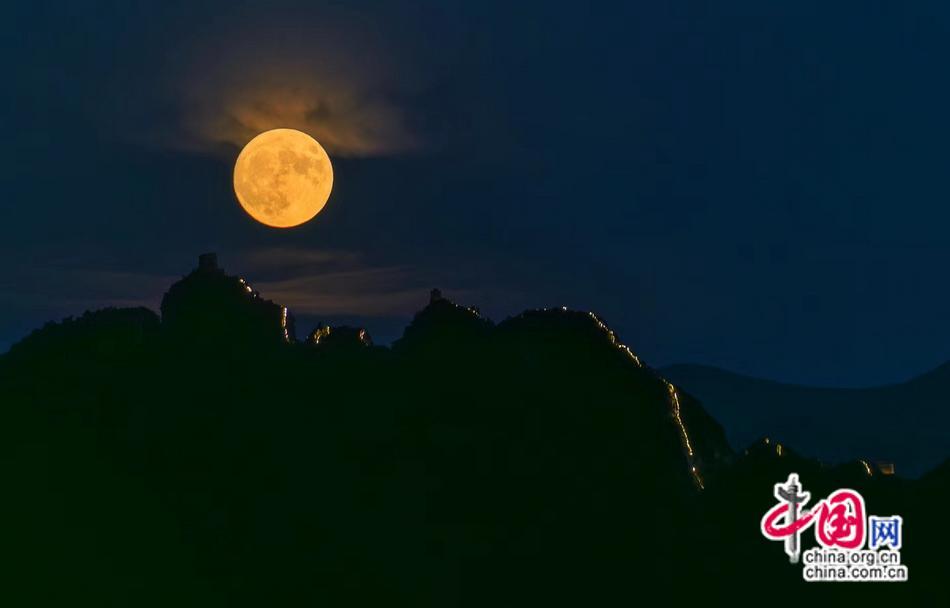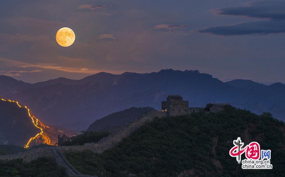 8月30日晚,今年最大“超級月亮”現身金山嶺長城夜空。曾被央視評選為“中國最美賞月地”的金山嶺長城顯得更加神秘、更加壯麗。